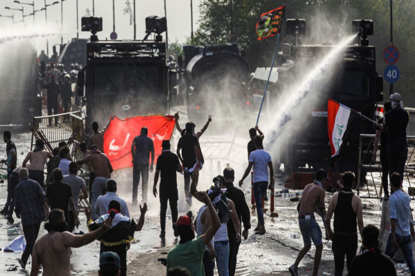وأطلق محتجون في إحدى المقاطع المنتشرة على وسائل التواصل الاجتماعي نداءات استغاثة جراء النيران الكثيفة التي استهدفتهم وأسقطت عددًا من القتلى وعشرات الجرحى بصفوفهم خلال احتجاجهم قرب ساحة الحرية وسط بغداد.