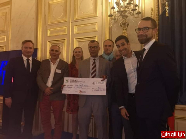 الفلسطينية ورئيس دائرة شؤون للاجئين بالتهنئة والتبريكات للدكتور حسام الأقرع بمناسبة حصوله على الجائزة الدولية الكبرى للتنمية المستدامة من قبل البرلمان ووزيري الخارجية والتنمية المستدامة في فرنسا.