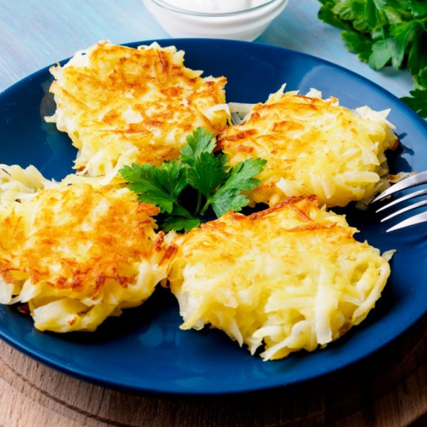 نشّكل البطاطس على شكل أقراص، ونحمي الزيت على درجة حرارة متوسطة.
