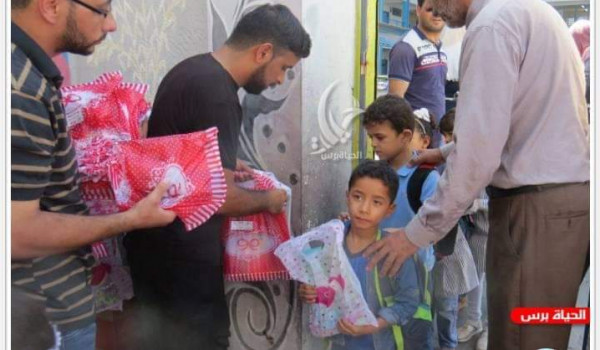 ووزع المتطوعون في المبادرة الهدايا العينية على عدد كبير من الأطفال في رياض الأطفال ومدرسة " البريج الإبتدائية د المشتركة "، وبحضور عدد من أعضاء المبادرة ورئيس مجلس أولياء الأمور زاهر البنا وعدد من الشخصيات والوجهاء