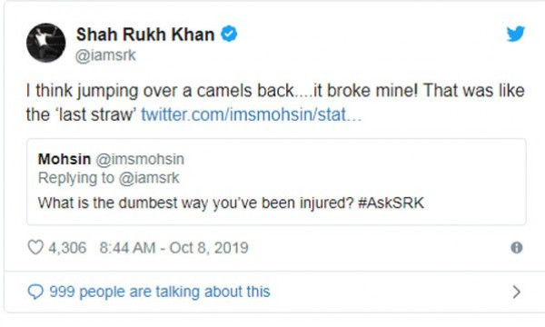 إذا كنت من محبي ومتابعي بوليوود الحقيقيين، فستعرف أن شاروخان غالبًا ما يقوم بعقد جلسة دردشة صريحة ولطيفة مع متابعيه على حسابه بموقع التغريدات القصيرة Twitter من وقت لأخر.