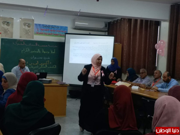نظمت شبكة حماية الشمال التابعة لمركز صحة المرأة جباليا- الهلال الاحمر لقطاع غزة لقاء توعوي حول اهمية الكشف المبكر عن سرطان الثدي والذي استهدف 20 مشاركة من امهات الطالبات في مدرسة حفصة الابتدائية المشتركة في معسكر جباليا، وبحضور اعضاء شبكة حماية الشمال.