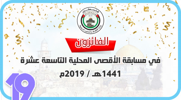 أعلنت وزارة الأوقاف والشؤون الدينية اليوم أسماء الفائزين في مسابقة الأقصى المحلية التاسعة عشرة لحفظ القرآن الكريم للعام 1441هـ / 2019م.