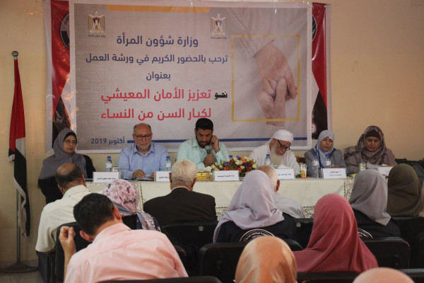 نظمت وزارة شئون المرأة ورشة عمل بعنوان " تعزيز الامان المعيشي لكبار السن من النساء" ضمن فعاليات اليوم العالمي لكبار السن. في بيت الامان للنساء المعنفات في مدينة غزة بحضور العديد من المؤسسات النسوية والمؤسسات المهتمة بقضايا كبار السن من النساء.