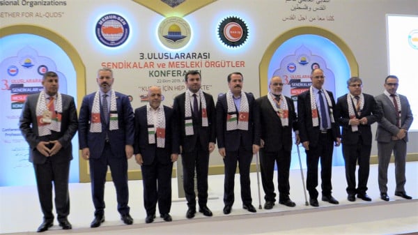 وكان الائتلاف النقابي العالمي لدعم القدس وفلسطين، قد تأسس عام 2011 في إسطنبول، بمبادرة من نقابتي (ميمور سان) و(حق إيش) التركيتين، وعقد عدة مؤتمرات في إسطنبول، ويساهم فيه عدد كبير من النقابات حول العالم، من بينها نقابات بدول عربية وإسلامية.
