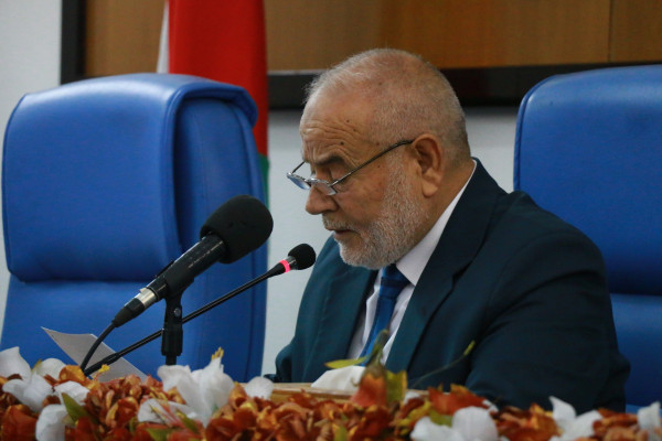 بدوره استهل د. أحمد بحر، الجلسة بالتنديد بتصاعد الاقتحامات الصهيونية للمسجد الأقصى وباحاته، منوهاً أنها تتم بدعم وغطاء كاملين من حكومة الاحتلال للمجموعات (الصهيونية) المتطرفة الساعية لتقسيم المسجد الأقصى زمانياً ومكانياً كمرحلة أولى تمهيداً لهدمه وإقامة هيكلهم المزعوم على أنقاضه في مرحلة لاحقة.