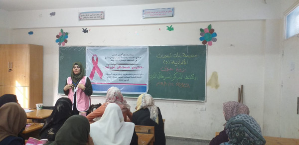 نفدت الجمعيه الفلسطينيه لرعايه مرضي السرطان يوما طبيا مجانيا للكشف عن سرطان الثدي وتوعيه السيدات عن أعراض هذا المرض وأهمية الكشف المبكر عنه وذلك في مقر الجمعية بمخيم النصيرات بمشاركة طاقم طبي متخصص