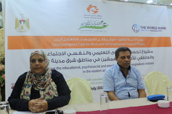 نظم مركز ابداع المعلم حفل توقيع عقود عمل ل 104 مستفيد من الخريجين والعمال في محافظة غزة حيث احتفل المركز بانطلاق مشروع تحسين المستوى التعليمي والنفسي والاجتماعي والعاطفي للأطفال المهمشين في مناطق شرق مدينة غزة" وذلك ضمن مشروع غزة الطارئ –المال مقابل العمل ودعم العمل الحر بإشراف مركز تطوير المؤسسات الاهلية وتمويل من البنك الدولي.