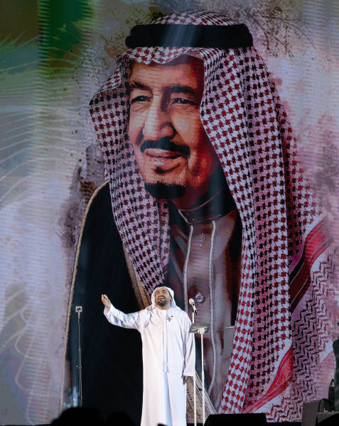 وفي ختام الليلة، شارك جميع الفنانين المشاركين بالحفل حسين الجسمي ومحمد عبده وعبادي الجوهر وأصالة نصري في غناء أوبريت "كِتَابْ مَجْد بْلادْنَا” من كلمات الأمير عبد الرحمن بن مساعد والحان صادق الشاعر، استهل "الجبل" الغناء فيه بالأبيات التالية: