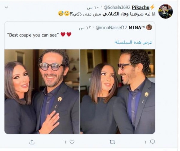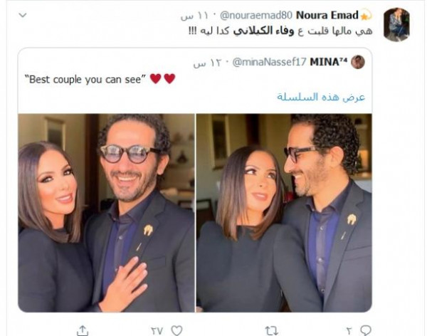"منى زكي تحولت لوفاء الكيلاني".. تداول رواد مواقع التواصل الاجتماعي صورة نُشرت للفنانة منى زكي، برفقة زوجها أحمد حلمي، مشيرين إلى الشبه الكبير بينها والإعلامية وفاء الكيلاني.