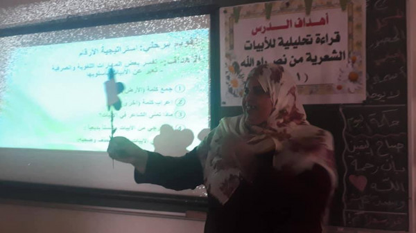 بهدف التنويع في أساليب التدريس واستخدام طرق تدريسية حديثة، نفذت معلمة اللغة الربية بمدرسة مريم بنت عمران الثانوية للبنات بمديرية التربية والتعليم بالوسطى ريم التلباني درساً توضيحياً في مبحث اللغة العربية للصف الثاني عشر علمي بعنوان "رام الله"، وذلك بحضور مشرفو المبحث انشراح أبو حمد وسليمان أبو سماحة ومديرة المدرسة نعمات حمدان ومشاركة مجموعة من معلمي ومعلمات اللغة العربية في مدارس الوسطى.