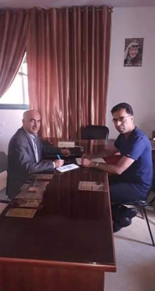 اللجنة الشعبية للاجئين مخيم خان يونس في زيارة تشبيك للعمل المشترك مُمثلة بالأخ عضو اللجنة رائد الغول، جمعية بيادر للبيئة والتنمية من اجل بحث سبل التعاون المشترك.