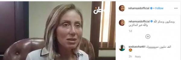 علّقت الإعلامية ريهام سعيد، على براءتها من الاتهامات المنسوبة إليها بالسخرية من المصريين في قضية "السمنة"، حيث استعرضت خبراً لإحدى الصحف المصرية عن براءتها على حسابها الرسمي في "إنستغرام"، وعلّقت عليه قائلةً: "ويمكرون ويمكر الله والله خير الماكرين".