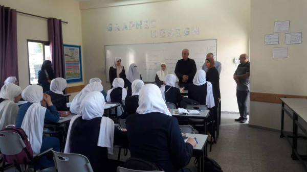 تفقد وفد من وزارة التربية والتعليم بغزة، سير العملية التعليمية بمدرستي شادية أبو غزالة وتل الزعتر الثانوية للبنات.