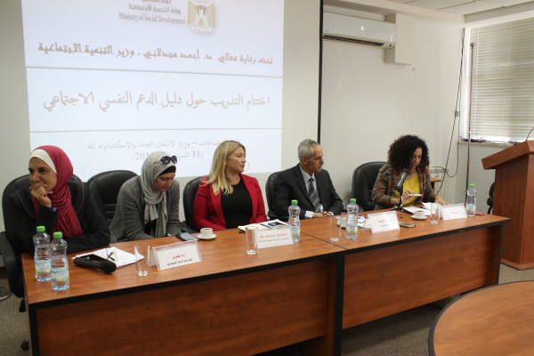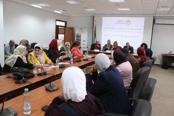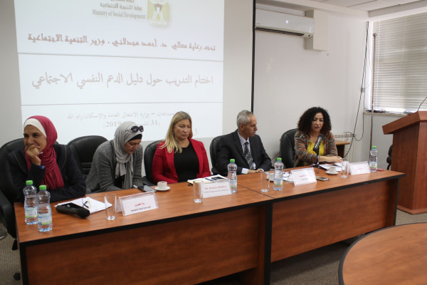 جاء ذلك خلال اختتام تدريب حول " دليل الدعم النفسي والاجتماعي" الذي نظمته الادارة العامة للرعاية الاجتماعية بوزارة التنمية الذي استهدف الاخصائيين الاجتماعيين ومدراء مراكز تأهيل الشبيبة والفتيات في مديريات التنمية الاجتماعية الممول من صندوق الأمم المتحدة لسكان بحضور ممثلة الصندوق لدى دولة فلسطين كريستينا بلوكهوس ومدير عام الرعاية الاجتماعية رنا المصري.