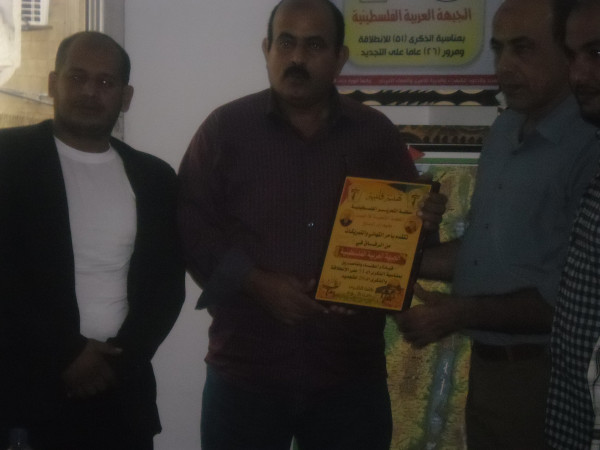 يذكر أن وفداً من اللجنة الشعبية للاجئين بدير البلح جاء في زيارة للجبهة العربية الفلسطينية لتهنئتها بذكرى الانطلاقة 51، و26 على التجديد، مقدماً درعاً تذكارياً