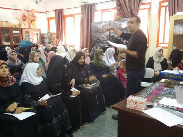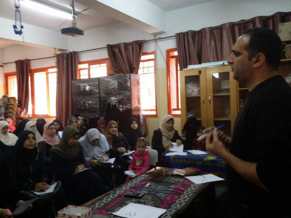 غزة: معلم يجتمع بأمهات الطلبة لشرح المنهاج لهن