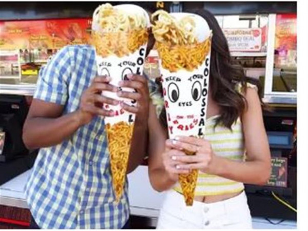 تقدم البطاطس المقلية بحجم 18 بوصة تقريبًا بكمية كبيرة، في مقاطعة لوس أنجلوس.