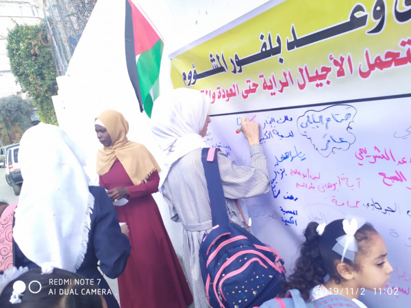 وتأتي هذه الفعالية التي شارك بها المئات من أبناء شعبنا الفلسطيني وخاصة طلبة المدارس، ضمن باكورة الأنشطة المشتركة لدائرة الشباب الفلسطيني ودائرة الأنشطة والفعاليات باللجنة، إحياءً لذكرى وعد بلفور المشؤوم الذي سلب حقوق الشعب الفلسطيني بأرضه ووطنه وحريته وقراره المستقل .