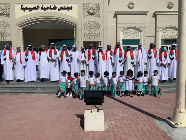 وقام أحمد الغاوي النقبي رئيس المجلس يرافقه نائب الرئيس والأعضاء والموظفون والأهالي برفع علم الدولة أمام مبنى المجلس مرفرفا بتلك المناسبة بمشاركة حضانة جمانه في خورفكان .