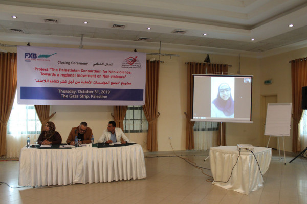 نظمت مؤسسة بال ثينك للدراسات الاستراتيجية حفل ختامي لمشروع "تجمع المؤسسات الأهلية من أجل نشر ثقافة اللاعنف" والذي هدف إلى نشر ثقافة اللاعنف والسلم الأهلي وتعزيز لغة الحوار في المجتمع الفلسطيني ونشر ثقافة وسلوكيات الحوار