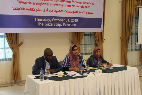 بدورها تحدثت أ. ريم رضوان من المركز العربي ناشط حول مبادرة AOA للاعنف، حيث نوهت أن هذه المبادرة جاءت من منطلق الظواهر السلبية المنتشرة على مستوى الشارع الفلسطيني.