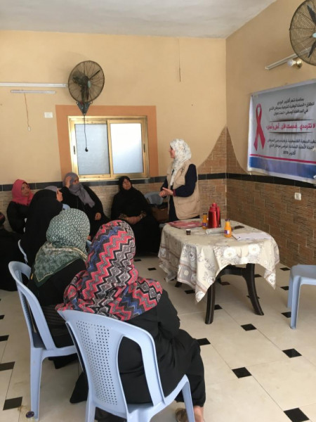 وعاينت الاخصائية نور صقر عدد من السيدات كفحص أولي للكشف المبكر عن سرطان الثدي حيث قامت الجمعية بتحويل حالتين منهن الى المستشفى للمتابعة.