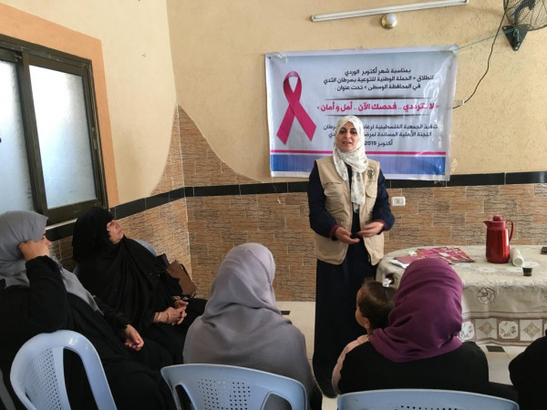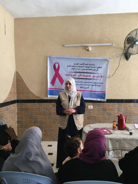 نفذت الجمعية الفلسطينية لرعاية مرضى فعاليات وأنشطة مختلفة حيث تضمنت حملة توعية للكشف المبكر عن سرطان الثدي في محافظة خانيونس "عبسان الكبيرة " (ديوان أبو طير).