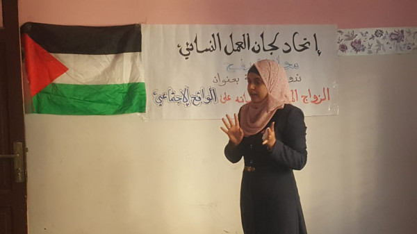 اختتمت اللجنة الإجتماعية التابعة لاتحاد لجان العمل النسائي الفلسطيني "الإطار النسوي للجبهة الديمقراطية لتحرير فلسطين " ورشات التوعية حول مخاطر الزواج المبكر في المحافظات وكان أخرها بمحافظة رفح بحضور عدد من السيدات .