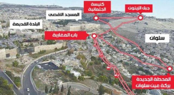 ونوهت الصحيفة، إلى أنه من المتوقع، أن يتم بناء التلفريك المثير للجدل بين المحطة الأولى في القدس، مقابل حديقة الجرس، وبين (مجمع كيدم) في سلوان، في القدس الشرقية، حيث تخطط جمعية (العاد) اليمينية لبناء مركز كبير للزائرين.
