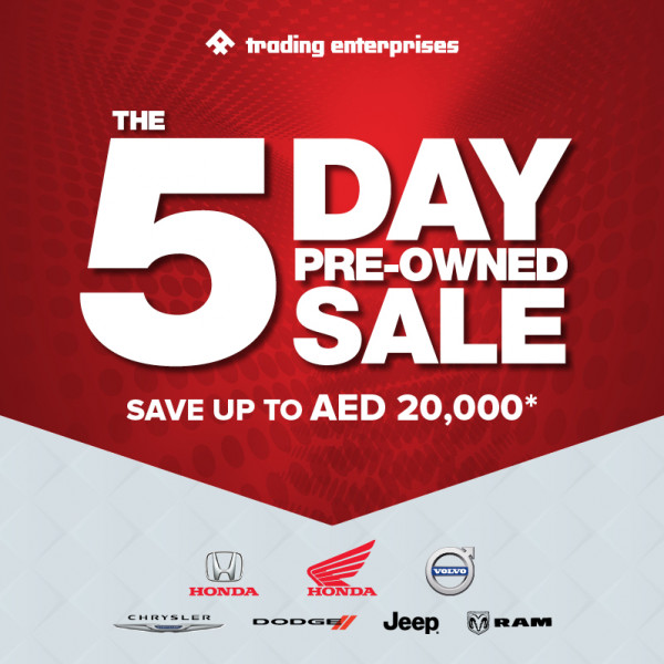 أعلنت شركة المشروعات التجارية، الموزع الحصري لسيارات ’هوندا‘ و’كرايسلر‘ و’دودج‘ و’رام‘ و’فولفو‘ في دولة الإمارات العربية المتحدة وسيارات ’جيب‘ في دبي والإمارات الشمالية، عن إطلاق عروض حسومات على السيارات المستعملة لمدة 5 أيام في صالات عرضها الواقعة في ’دبي فستيفال سيتي‘.