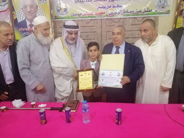 وقدم الشيبي درع التميز للطفل محمود عباس شراب لجهوده وتميزه في حفظ القران الكريم متمنيا له التفوق والتقدم والنجاح .