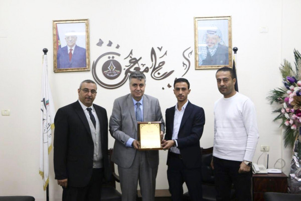 وقدم أبو شوقة درعا تكريميا للقيق باسم رئيس اللجنة معالي أ. د. علي زيدان أبو زهري رئيس دائرة التربية والتعليم في م.ت.ف، متمنيا له السداد والتوفيق في تنمية الواقع التعليمي والبحث العلمي والإبداع لدى طلبتنا في هذه الجامعة العريقة، ومؤكدا على مساعي اللجنة الوطنية لتقديم دعمها للجامعة، فيما تم بحث سبل التعاون وتقديم التسهيلات بما ينعكس إيجاباً على حياة الطالب الجامعية.