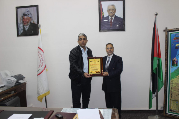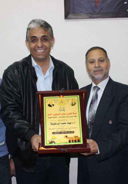 وفي ختام الزيارة قدم المكتب الحركي للاقتصاديين درع درعاً تذكاريا للدكتور أبو طويلة بهذه المناسبة.