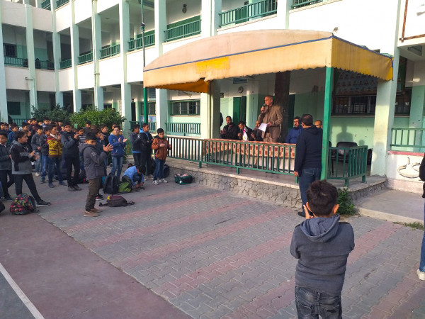 في كلمته أكد مدير المدرسة أ. قرموط على التمسك بسلاح العلم الأوحد الذي يوصلنا إلى تحرير الأرض و المقدسات داعياً الطلاب إلى الجد و الاجتهاد.