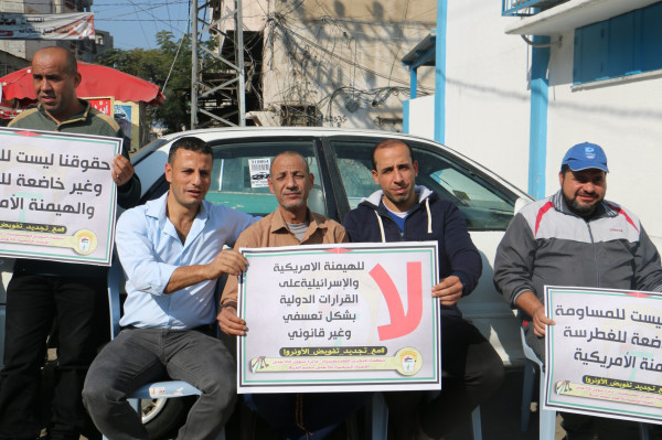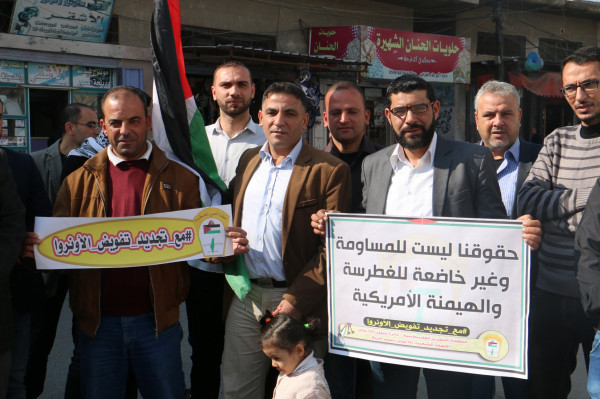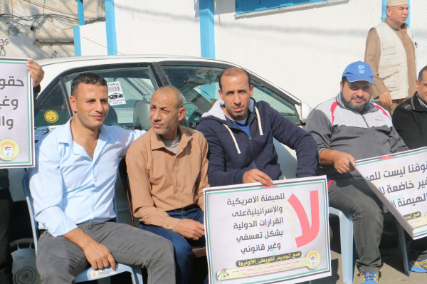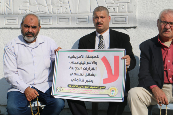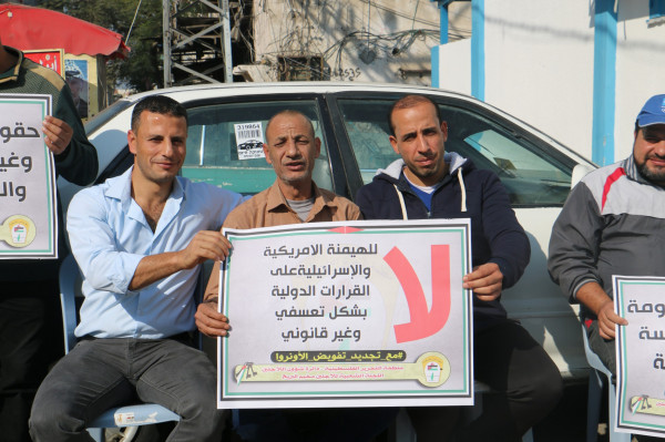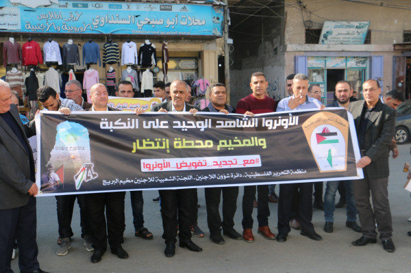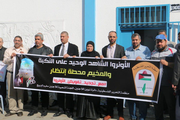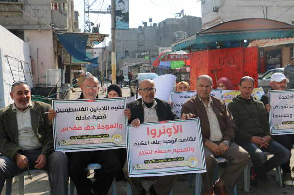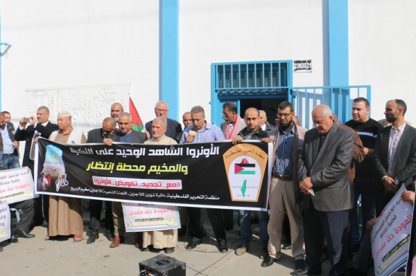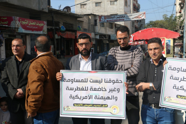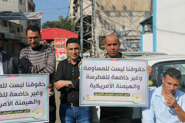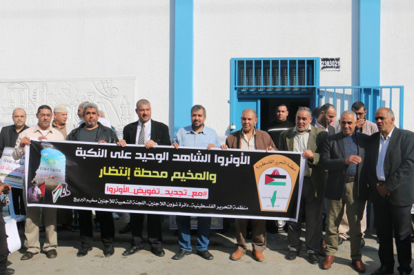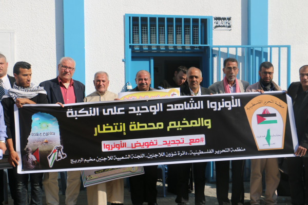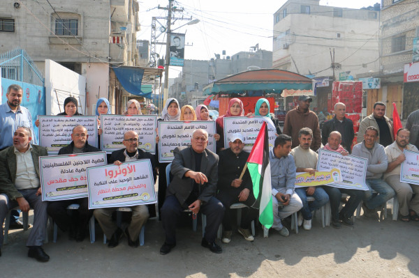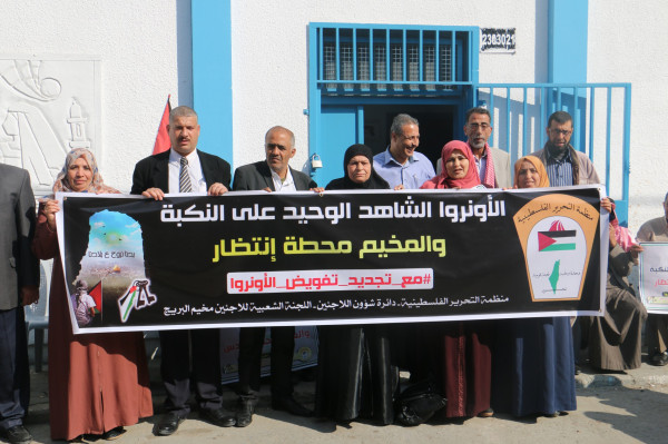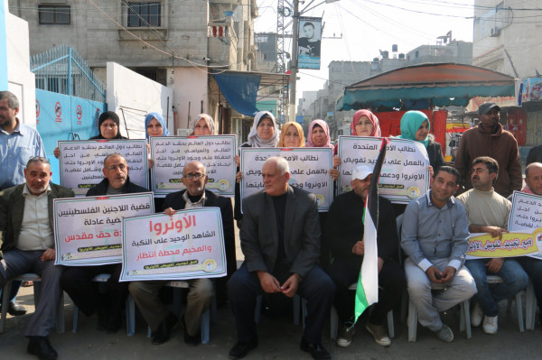 اللجنة الشعبية للاجئين بالبريج تنظم وقفة داعمة لدعم تجديد تفويض (أونروا)