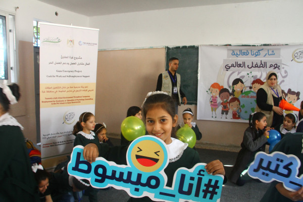 وقد جاء هذا أيضا بالتزامن مع يوم الطفل العالمي والذي تم فيه أيضا اعطاء الفرصة للطلبة بالتعبير عن أنفسهم من خلال الرسومات والأناشيد التي تنادي بالحق في التعلم وتوفير الحماية الدولية لأطفال غزة ونبذ العنف.
