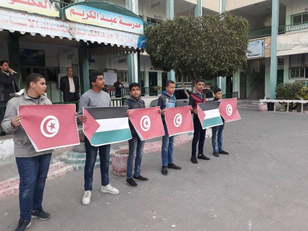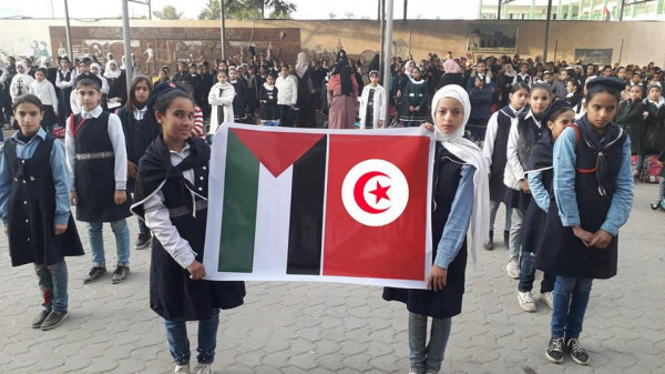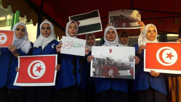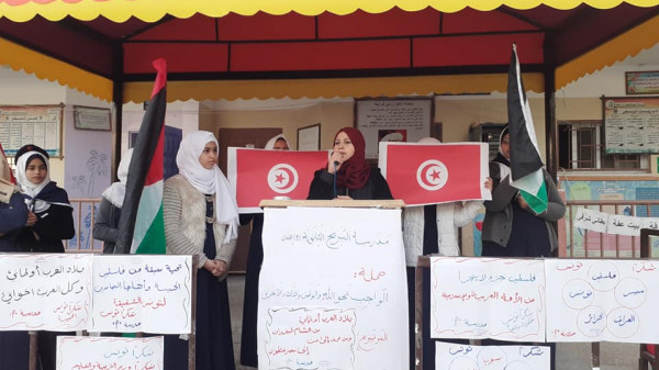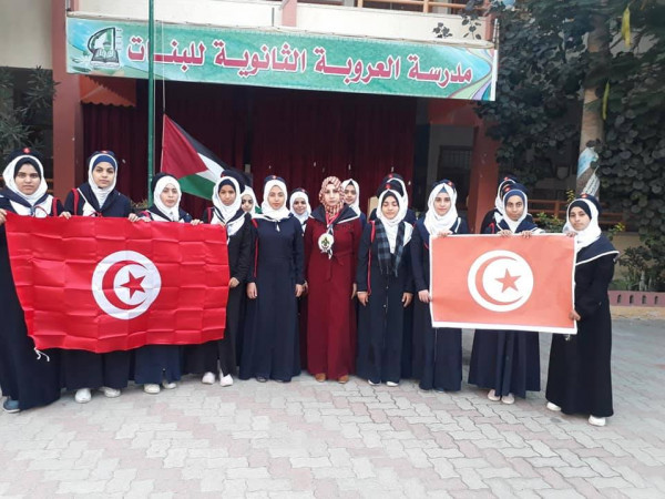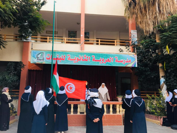 رفرفت الأعلام التونسية بجوار علم فلسطين فوق كافة مدارس مديرية الوسطى وعزف النشيد الوطني التونسي والفلسطيني خلال الإذاعة الصباحية التي خصصت للحديث عن دور تونس الكبير في دعم القضية الفلسطينية والوقوف بجانب حق الفلسطينيين في الحرية والاستقلال.