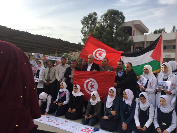 وشهدت الشقيقة تونس مؤخرا، وبقرار من وزير التعليم التونسي، تنظيم موكب تحية العلمين التونسي والفلسطيني والذي تضمن تنظيم موكب دقيقة صمت، في كافة المؤسسات التربوية التونسية، تضامنا مع القضية الفلسطينية، وردا على القرار الإسرائيلي بإغلاق مؤسسات فلسطينية في القدس المحتلة.