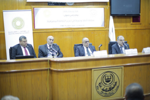 نظمت كلية الاقتصاد والعلوم الإدارية في الجامعة الإسلامية يومًا دراسيًا حول سلطة النقد ودورها في تعزيز الثقافة المصرفية، وانعقد اليوم الدراسي في قاعة المؤتمرات بمبنى طيبة للقاعات الدراسية، بحضور كل من: الأستاذ الدكتور حمدي زعرب -عميد كلية الاقتصاد والعلوم الإدارية، والأستاذ خالد الحسيني -رئيس قسم المحاسبة، ولفيف من المختصين والمعنيين، وجمع من طلبة الكلية.