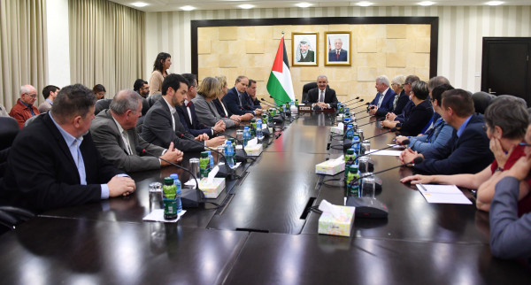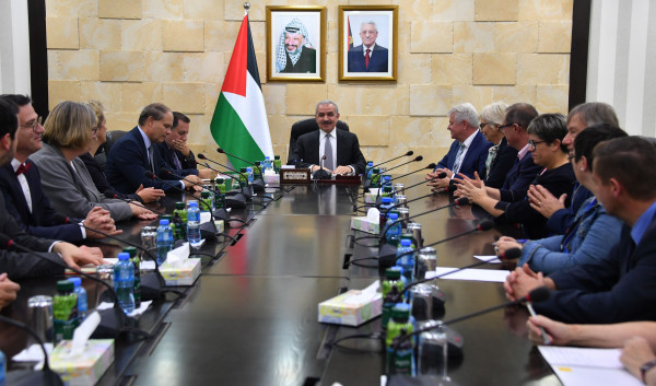 وأطلع اشتية الوفد، على آخر التطورات السياسية، والانتهاكات الإسرائيلية، بالإضافة إلى الجهود المبذولة في سبيل عقد الانتخابات التشريعية والرئاسية في فلسطين.