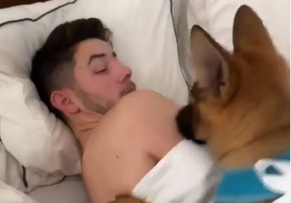 وأظهر الفيديو نجمة بوليوود بريانكا شوبرا، وهى تهدى الكلب إلى نيك جوناس، حيث كان يحاول إيقاظه من النوم ، وشاركت تلك اللحظات عبر حسابها على انستغرام.