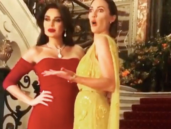 وظهرت النجمتان اللبنانية والتركية اثناء التقاطهما صورة معا لتعلق مريم اوزرلي ضاحكة: "ما هذه القنبلة الى جانبي".