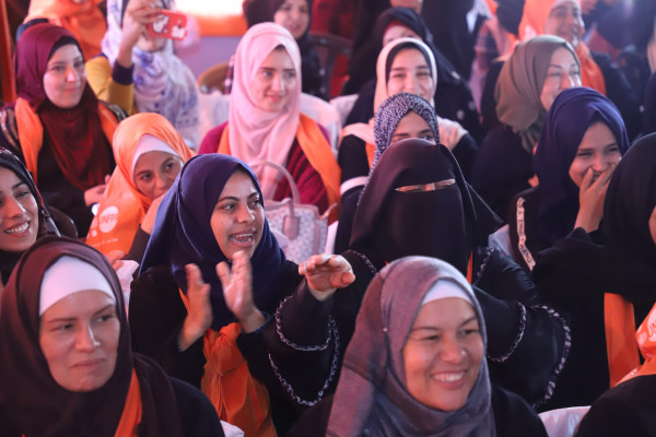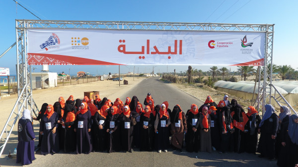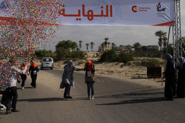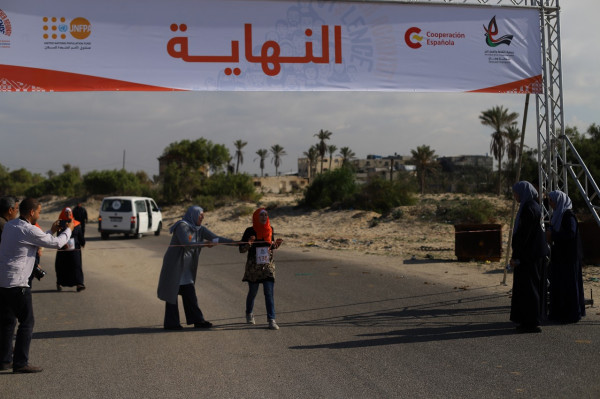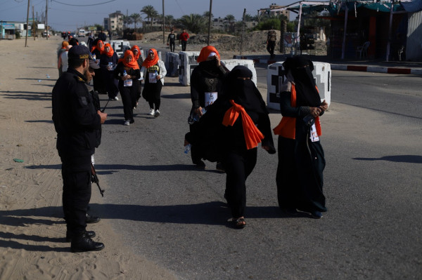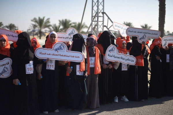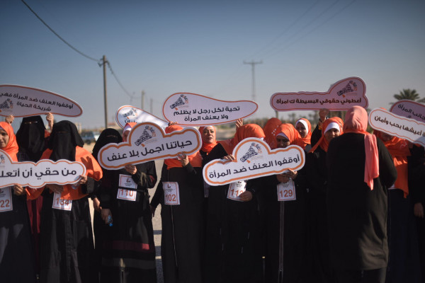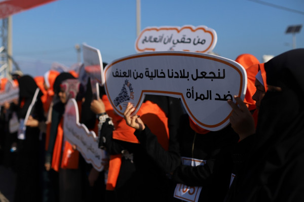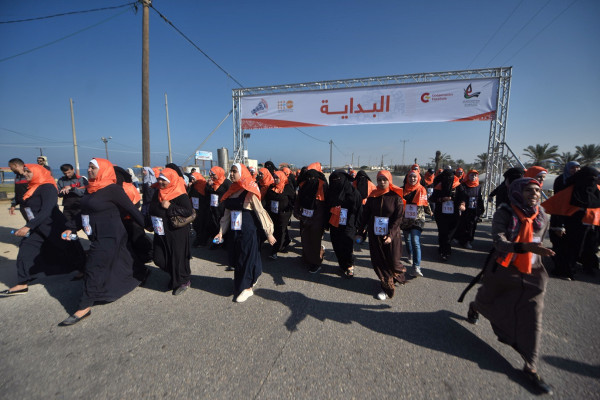 ماراثون وشعار بشري برتقالي لمناهضة العنف ضد النساء في غزة