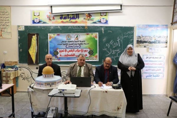 وأضافت المسارعي أن هذه الندوة تأتي ضمن مبادرة" الدور الاعلامي الرقمي في تعزيز هويتي الفلسطينية" التي تنفذها المعلمتان مها سمور وريهام اسماعيل.