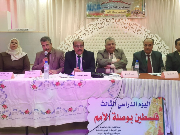 في كلمته تحدث مدير التربية والتعليم عن أهمية هذا اليوم الدراسي التاريخي الذي يغرس في نفوس الطلبة حب فلسطين والانتماء لها ويوضح مكانة فلسطين بين الأمم، مضيفاً بأن مديرية الوسطى تشجع وتدعم المدارس لعقد مثل هذه الدروس والندوات التي تربط الطالبات بتاريخهم ووطنهم.