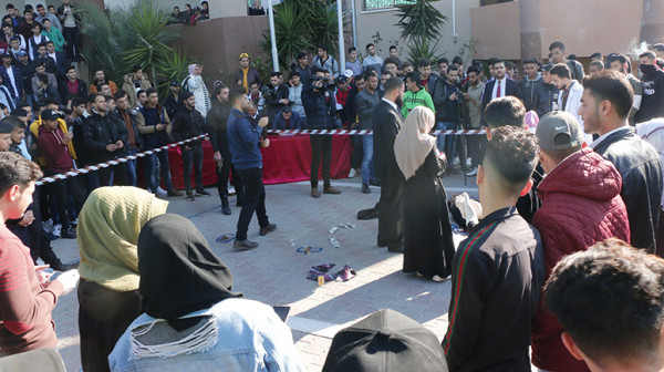 نظم قسم مساعد قانوني بكلية الدراسات المتوسطة بجامعة فلسطين، تدريباً عملياً حول مسرح الجريمة تحت إشراف أ.أسامة صباح رئيس قسم مساعد قانوني، وبحضور كل من الدكتور أمجد الشنطي عميد كلية الدراسات المتوسطة، والدكتور نهاد بدرية عميد شؤون الطلبة، والأستاذ يوسف الداعور مدير شؤون الطلبة، ولفيف من طلبة الجامعة.