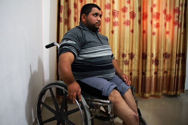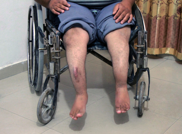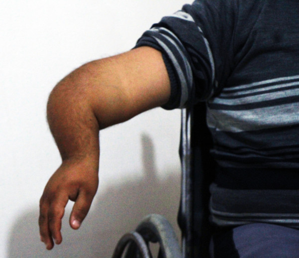 يُعاني المواطن أدهم عوني سلمان أبو سبت (28 عاماً)، من إعاقة حركية ناتجة عن مرض خلقي وهو تكسير العظام، وتعرض لعدة كسور متكررة بالأطراف العلوية والسفلية أدت إلى تشوهها، وهو عاجز عن الحركة تماماً.