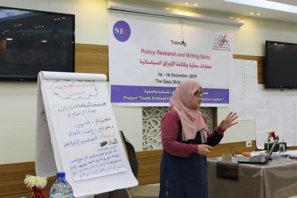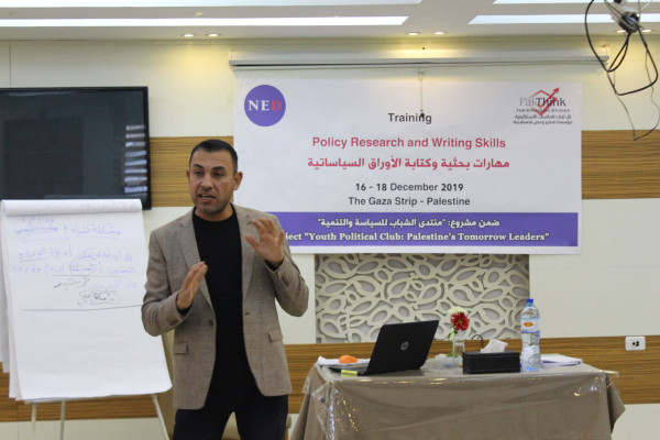 اختتمت "بال ثينك للدراسات الاستراتيجية" برنامجاً تدريبياً بعنوان "إعداد وكتابة الأوراق البحثية"، وذلك ضمن مشروع "منتدى الشباب للسياسة والتنمية"، الممول من الصندوق الوطني للديمقراطية (NED)، والذي يهدف لبناء قدرات الشباب الفلسطيني الناشئ على التفكير الاستراتيجي والعمل المجتمعي، وذلك بمشاركة 20 متدرب/ة، من طلاب وخريجي الجامعات من تخصصات مختلفة.