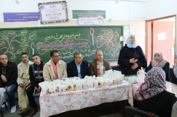 هذا وقال أ. حاتم قنديل رئيس اللجنة الشعبية للاجئين بالمخيم اثناء تكريم الفترة الصباحية ان تكريم معلمات مدارس الثانوية على وجه الخصوص جاء من منطلق المسؤولية الكبيرة التي يتحملوها مدرسات بنات الثانوية اتجاه بنات مخيمنا الصامد.